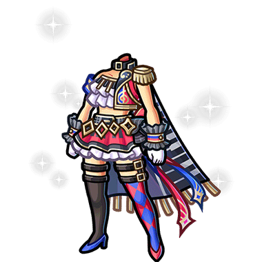 - ダイヤ・シンフォニーの衣装。チェック柄のソックス、鍵盤柄のマントが印象的。