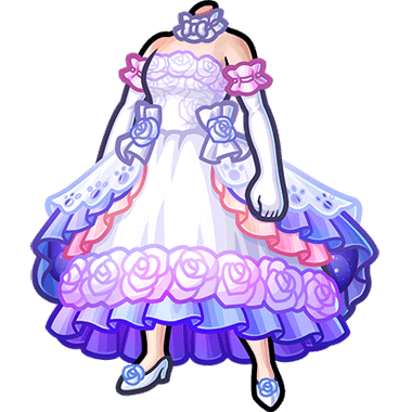沢山のフリルと薔薇で彩られた華やかなドレス。 花嫁の美しさを際立たせる。