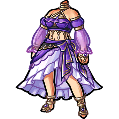 - 煌びやかな宝石をあしらった服。 踊り子のような軽やかな動きで敵の視線を奪い、反撃の隙すら与えないという。