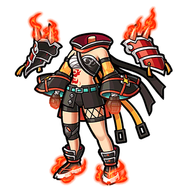 - マトイの忍び装束。 元気いっぱいのマトイらしいデザイン。 炎のオーラは闘志の表れ。