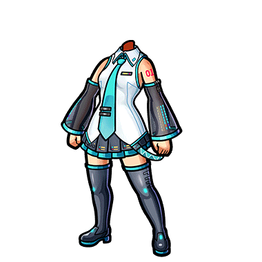 - 初音ミクV3の服。以前のものと比べてデザインが少しずつ違っている。色が白に変わっているのが大きな特徴。