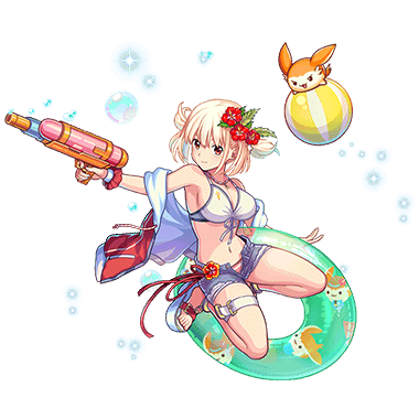 - つかの間の休日に水着姿で海を満喫する千束。 ノースリーブパーカーはたきなとの色違い。