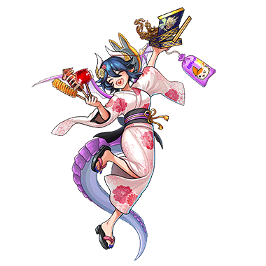 - 初めて夏祭りに来たソルティ。屋台の食べ物を片っ端から制覇するつもりのようだ。