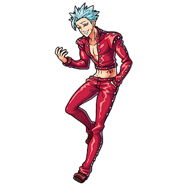 - <七つの大罪>の一員の元・人間、<豚の帽子>亭の料理番。左脇腹に狐の印を持つ。「不死身のバン(アンデッド・バン)」という異名を持っている不死の肉体を持つ青年。昔、盗賊をしており、今でも手癖が非常に悪い。