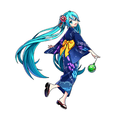 - 浴衣を着た初音ミク。深い蒼色、音譜マークが入ったミクに似合う可愛いデザインの浴衣となっている。