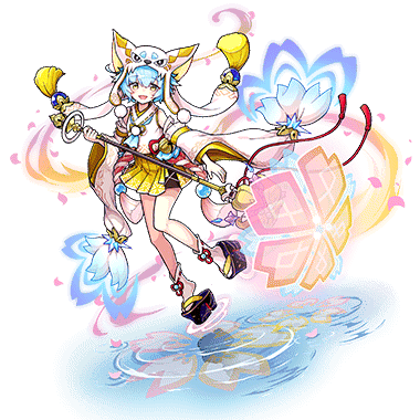 - 巫女服式アーマーを身にまとい、巨大な桜型シールドを操る可憐な少女。 ふわりと水面を征くさまは優雅そのものだが、忘れてはいけない。 重さを増した結界アーマーとシールドを軽々操る筋力胆力も擁してしまっていることを…!! 彼女の歩いた後にはペンペン草すら残らない。ケモミミフードもビックリ。
