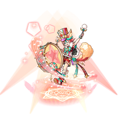 ・自身に協奏効果([特別]最大HP100%上昇、[特別]全ステータス100%上昇、[特別]火、水、風、光、闇、時、星属性攻撃補正値を4上昇、自身を除く味方に「協奏効果」が付与されている場合に人数に応じて「状態異常無効」「デバフ無効」「コスト減少無効」「ユニゾンゲージ低下無効」が追加で発動)を90秒間付与