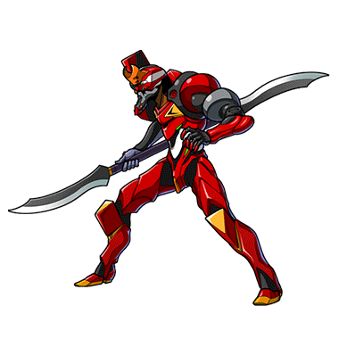 - 第10の使徒との戦いで損傷した機体を修復、改造した2号機の姿。破損した頭部と腕は機械パーツで補修されている。腕はアタッチメントに換装することが可能で状況や作戦内容により切り替えている。