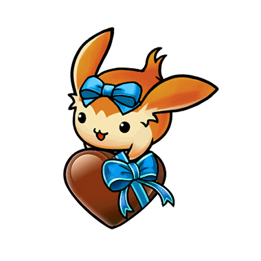 - 青いリボンでラッピングされたチョコを抱えたリミミンビッグ。「手作りチョコなんて重いリミミンと思われないか心配ミン…」
