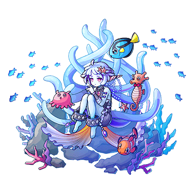 - 海の中にも地上と変わらない平和を望むものが多くいる。その中でもシエルはその筆頭で争いは好まず、海の生き物たちと平和な時間を過ごすのが好き。髪の中には仲良しの子たちが入っており、一緒に海流にのって泳ぐのが大好き。まだ幼い彼女だが、他の海の底のモンスターたちとは友好的である。「今日はマナナンさんのところへ遊びにいくでしゅ」