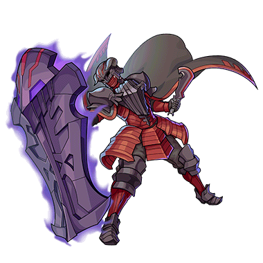 - クロムがテイムモンスター「ネクロ」を鎧として装備している姿。 「ネクロ」はスキル【幽霊装着】によって主人に装備されながら戦う。