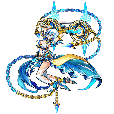 - 懸命な祈りが救い人を呼び寄せ、ついに神の目から逃れられた王女。しかし幾重にも巻かれた鎖をとく事はできなかった。時は経ち、王女は自らを縛る鎖を自在に操る術を見い出した。その鎖は星のように輝く金と海のように深い蒼になっていたという。