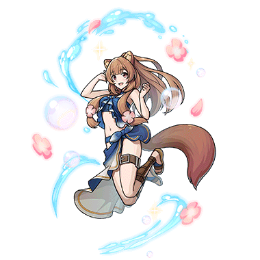 - 普段は剣を構えて凛としているラフタリアであるが、海辺で水と戯れる姿は年相応の少女のままであった。戦いの日々を忘れ、今は一時の休息を得る。