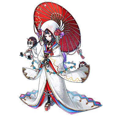 - 恋に憧れ育った鬼の姫は、其の時を迎え白無垢の衣に身を包み、花笑みを浮かべ愛しく立ち振舞わんとする。 しかし角隠しから見える”其れ”や御付きのモノは、新しく生まれ変わり嫁ぎ先で生涯を遂げるという心映えの玉響なのかもしれない。