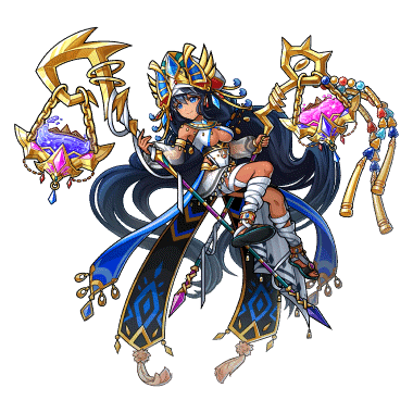 - 冥界を司る女神・オシリス。 彼女の微笑みは至極美しく何人も虜にするが、"悪人"に容赦はしない。 この世界に平和が続いているのは、彼女の慈悲・慈愛があってこそなのだ。