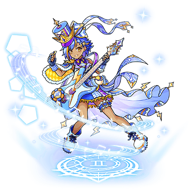 ・自身に協奏効果([特別]最大HP100%上昇、[特別]全ステータス100%上昇、[特別]火、水、風、光、闇、時、星属性攻撃補正値を4上昇、自身を除く味方に「協奏効果」が付与されている場合に人数に応じて「状態異常無効」「デバフ無効」「コスト減少無効」「ユニゾンゲージ低下無効」が追加で発動)を90秒間付与