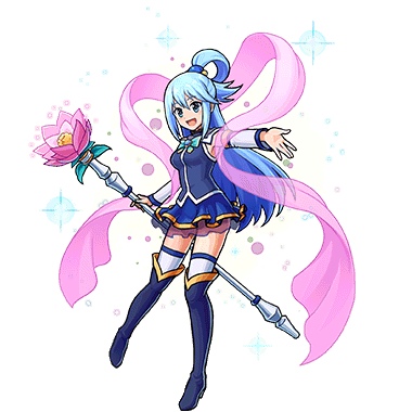 - カズマが異世界へ転生する際、巻き込まれて異世界へやってきた女神。全般的なステータスは高いが、お調子者でトラブルを引き起こすことも多く、カズマからは「駄女神」と呼ばれることも。宴会芸が得意。