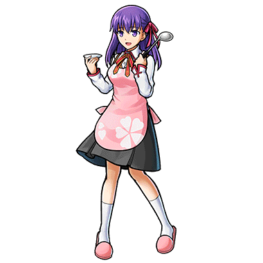 - 士郎の家で料理を作る際の姿。ピンク色の桜柄は彼女に良く似合っている。