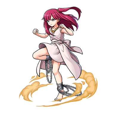 - モルジアナがアリババの眷属となった際の姿。奴隷時代に身に着けていた足枷を金属器として加工してもらい、それを身に着けている。鎖を使って、移動攻撃を行うことができる。