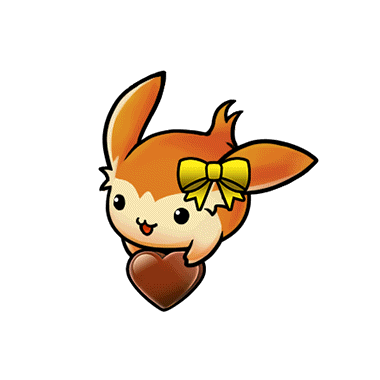 - 黄色いリボンをつけ、チョコを抱えたリミミン。「かんちがいするんじゃないミン!これは義理ミン!」