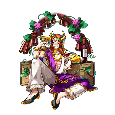 - 豊穣を司る神で、グルメフェスティバルにはぶどうジュースを出品するために訪れた。 祭りの雰囲気とぶどうジュースが好評だったことで気分を良くしたディオニュソスはある提案を行う。