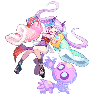 ・自身に武装化(効果中はHPとCPにダメージを受けない、[特別]物理攻撃力、魔法攻撃力100%上昇、コスト減少無効化、ユニゾンゲージ低下無効化、[特別]攻撃時に軽減、反射を貫通、[特別]攻撃時に無敵、無効を貫通、一定ダメージ(バフ効果、フィールド効果の影響を受けない最大HP300%分)を受ける事で解除)を90秒間付与