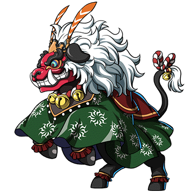 - 新年の記念に作成された獅子舞が意志を宿した姿。人々を魔から護るめに産まれた存在だが、その力を溜め込みすぎて、結果人々を襲うようになってしまったのではないかといわれている。