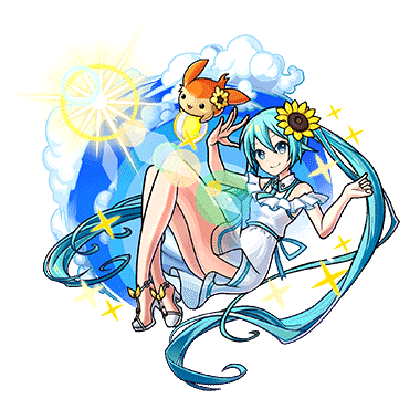 - 夏の音楽ライブの合間の休息にこっそり海を訪れたミクさん。白いワンピースとひまわりの髪飾りをつけて大はしゃぎ!その姿はまるでどこかのお嬢様のよう……。でも、お忍びで来ているのでファンに見つからないかちょっとハラハラのご様子。
