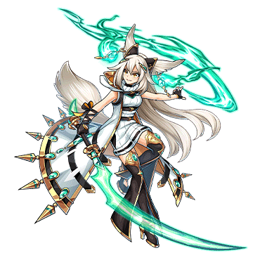 ・自身に『英雄化』([特別]最大HP100%上昇、[特別]全ステータス100%上昇、デバフ無効、状態異常無効、ユニゾンゲージ低下無効、バフ無効【デメリット】、自身の受けるHP回復効果を70%低下【デメリット】)を60秒間付与