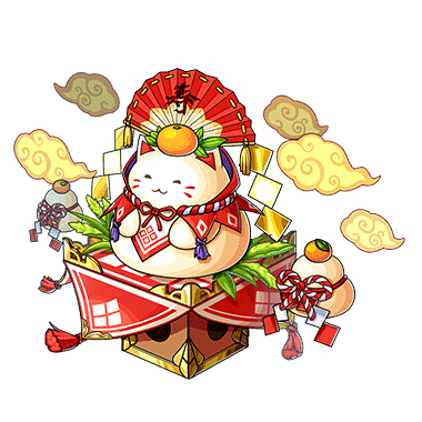 - もちもちな福の神の寿もち太郎。彼から餅をもらうと、幸福な一年を過ごすことができるとか。「最高に楽しい一年になりますように、幸せのお裾分けにゃー」