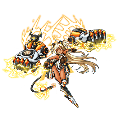 - 宇宙海賊オクタノヴァの追跡班。 味方がうち漏らした敵を蹴散らす役も担っている。 巨大な拳を操る豪快な少女で、その爆発力はマヴェルスに負けない。 大食いでカレーが好き。よくマヴェルスとくだらないことで争っている。 喧嘩するほど仲がいい。