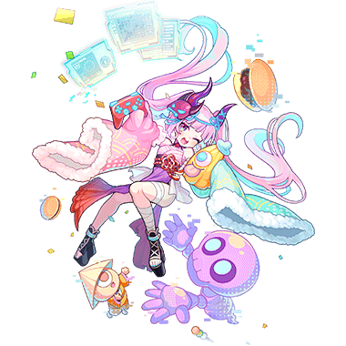 ・自身に武装化(効果中はHPとCPにダメージを受けない、[特別]物理攻撃力、魔法攻撃力100%上昇、コスト減少無効化、ユニゾンゲージ低下無効化、[特別]攻撃時に軽減、反射を貫通、[特別]攻撃時に無敵、無効を貫通、一定ダメージ(バフ効果、フィールド効果の影響を受けない最大HP300%分)を受ける事で解除)を120秒間付与