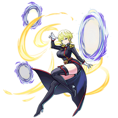 ・自身に武装化(効果中はHPとCPにダメージを受けない、[特別]物理攻撃力、魔法攻撃力100%上昇、コスト減少無効化、ユニゾンゲージ低下無効化、[特別]攻撃時に軽減、反射を貫通、[特別]攻撃時に無敵、無効を貫通、一定ダメージ(バフ効果、フィールド効果の影響を受けない最大HP300%分)を受ける事で解除)を120秒間付与