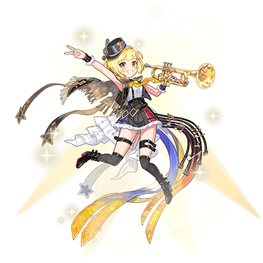 ・味方全体に協奏効果([特別]最大HP100%上昇、[特別]全ステータス100%上昇、[特別]火、水、風、光、闇、時、星属性攻撃補正値を4上昇、自身を除く味方に「協奏効果」が付与されている場合に人数に応じて「状態異常無効」「デバフ無効」「コスト減少無効」「ユニゾンゲージ低下無効」が追加で発動)を90秒間付与
