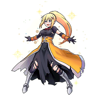 - 見た目はクールな美女だが、戦闘の際は自ら敵陣に飛び込み盾役を買って出るもどこか嬉しそうにしているなど、ややもったいないところのある女騎士。防御力はあるが、不器用すぎて攻撃はまったく当たらない。