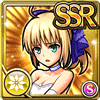 - キャスターの束縛から解放されたセイバー。普段の髪型と異なるポニーテールと白いドレスが特徴的な姿。その姿は普段の凛々しい彼女とは異なる可愛さをも兼ね備えた姿である。