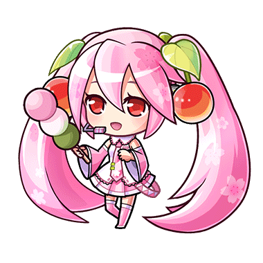 - デフォルメされた桜ミクさん。ちいさくなっても歌声はパワフル。お花見に行くならやっぱりお団子。