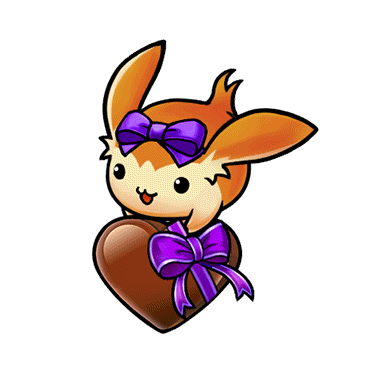 - 紫色のリボンでラッピングされたチョコを抱えたリミミンビッグ。「手作りチョコなんて重いリミミンと思われないか心配ミン…」