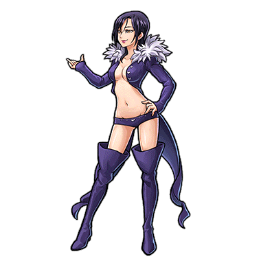 - <七つの大罪>の一員。首の左側に豚の印を持つ。蠱惑的な容姿の美女。「ブリタニア一の魔術士」と呼ばれている。弟子からは「反則」と言われるレベル。