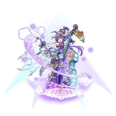 ・自身に協奏効果([特別]最大HP100%上昇、[特別]全ステータス100%上昇、[特別]火、水、風、光、闇、時、星属性攻撃補正値を4上昇、自身を除く味方に「協奏効果」が付与されている場合に人数に応じて「状態異常無効」「デバフ無効」「コスト減少無効」「ユニゾンゲージ低下無効」が追加で発動)を90秒間付与