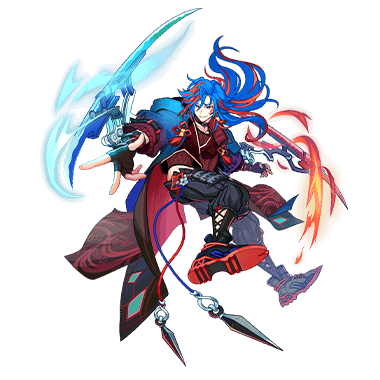 - 最強・天才と称えられている神出鬼没の派手な忍者。 掴みどころがなく自信家な性格で、妹のマトイをよくからかっているが彼女のことはとても大切に思っている。 二本の仕込み刀「撃剣・蒼」「撃剣・紅」と忍術を掛け合わせた独特の戦闘スタイルで敵を圧倒する。