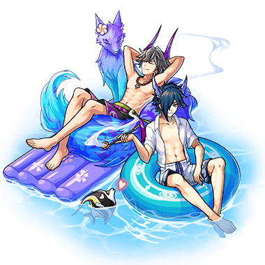 - 優雅に海に佇むミツナリと夜叉丸。 砂浜からは二人を見つめるたくさんの視線を感じる。