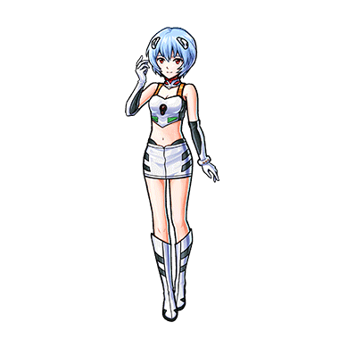 - レースクイーン衣装のレイ。エヴァに搭乗しているレイとは少し違った可愛らしさをもっている。レイのきめ細くて白い肌を見られるのはレースクイーン衣装だけかも!?