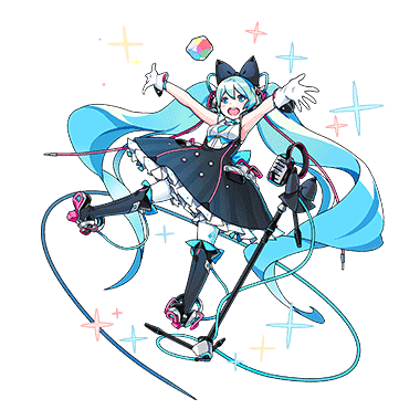 - ミクの周りに輝きと様々な装飾が浮かび上がっている状態。まるで歌声にのってリズムをとっているかのよう。