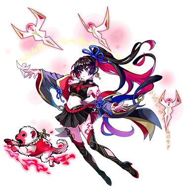 - 自身の周囲に無数に飛んだ人型の式神符、猿の式神と連携し遠距離の戦いを得意とする陰陽師。 陰陽師としての戦いのない時は、連れている猿の式神を連れて街のスイーツショップを巡っている。