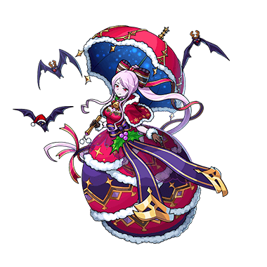 - シャルティアがクリスマス用のパラソル、ドレスに身を包んだ姿。自身の周りを飛ぶ蝙蝠もクリスマスに合わせた姿をしている。その歩みの先が敬愛する主の元かどうかは、翌日の朝にわかるだろう。