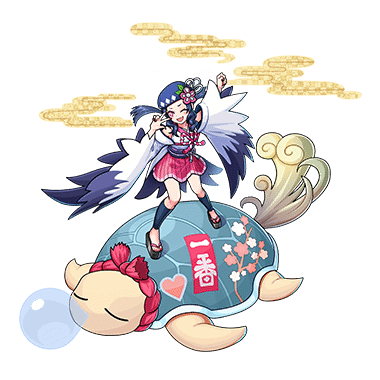 - 年が明けると彼女がやってくる。なんだか縁起がよさそうなお供の亀に乗って、お正月を全力で満喫しにやってくる。 さて、今年は何をして遊ぼうか?