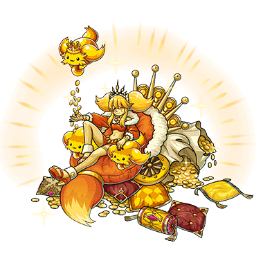 - お金になりそうな物はなんでも集めるゴールドリミミン達の女王。 気づけば金貨だけではなく財宝も彼女の周りに集まっていた。 心なしかゴールドリミミン達も喜んでいる様だ。