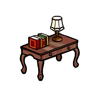 こげ茶色の西海風の机。かわいらしい見た目に、つい引き出しを開けたくなってしまう。