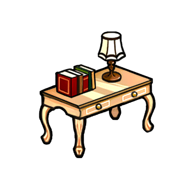 ベージュ色の西海風の机。ベージュの優しい色合いが雰囲気を和らげる。